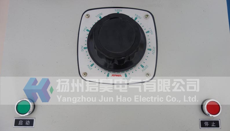 3、接通電源,綠色指示燈亮,按下啟動按鈕,紅色指示燈亮,表示變壓器已通電,等待升壓;