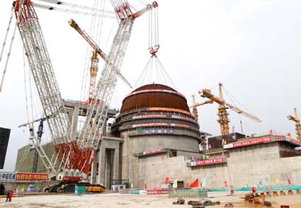 田灣核電4號機(jī)組穹頂?shù)跹b轉(zhuǎn)入設(shè)備安裝階段